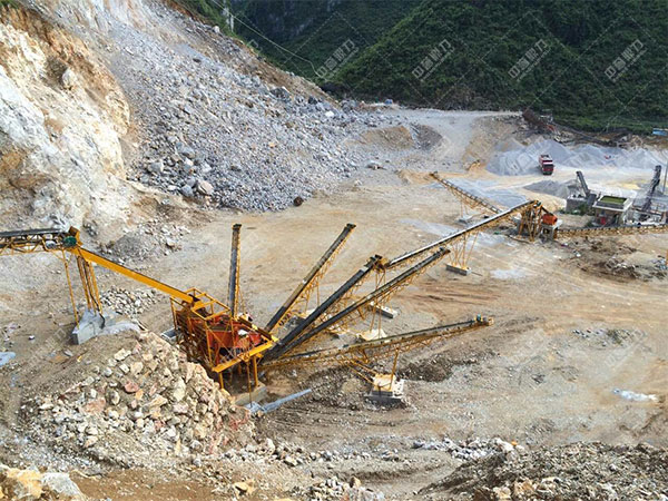 1、方案一:振動送料機+pe鄂破機(粗碎)+反擊礦山碎石機/圓錐碎石機(中、整型破碎)+石子打砂機+振動篩+砂石洗選機械+運輸機。(不同的生產要求配合的機械的性能型號不同,所所需配合的機械和數目也是不同的,假如所處置的河道石的粒度過500毫米,所需配合粗碎、中整型破碎、制沙機械,如粒度在50-800毫米范圍內,則只所需配合二級破石機械和石子打砂機就夠了)